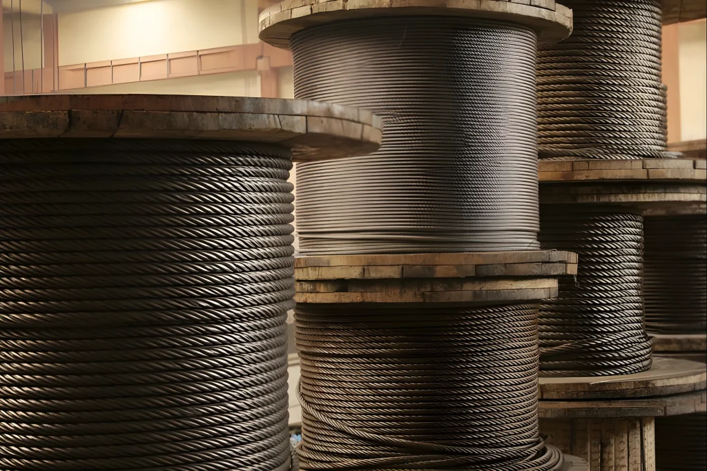 Robust stainless steel wire ropes designed for lifting, rigging, and heavy-duty use.