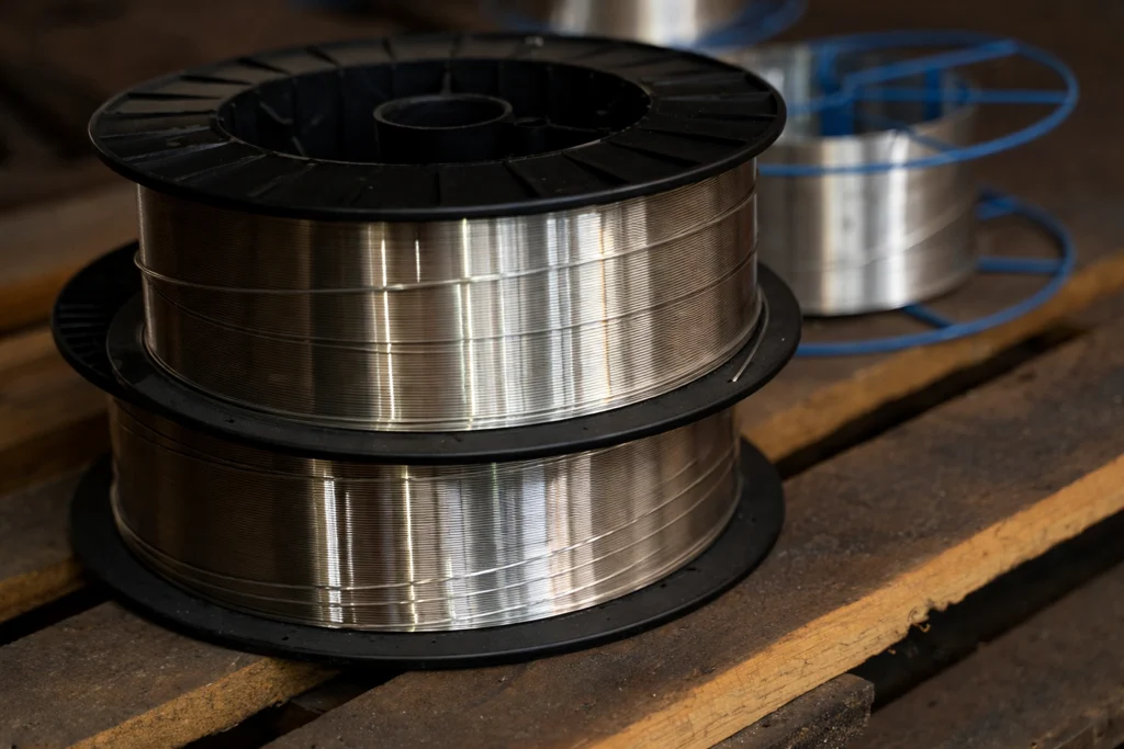 Uniform stainless steel wire spools ensuring smooth handling and consistent performance.